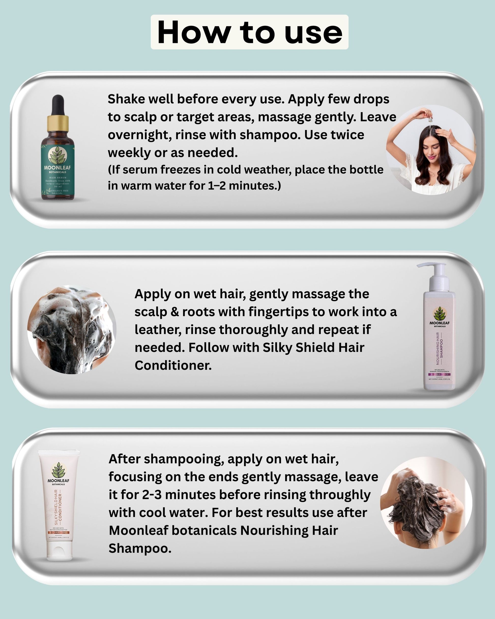 Transform your hair care routine with Moonleaf Botanicals’ Ultimate Hair Shield Combo — the perfect 3-step solution to cleanse, nourish, and revive your hair. This power-packed trio works together to give you healthier, stronger, and more beautiful hair — naturally.